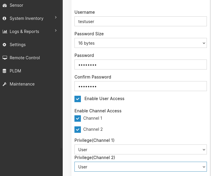 - If you would like to create a new user, you can select user #3 (or any other available spot) in the user management window. Then fill out the information for this new user. Scroll down and select “Save.”