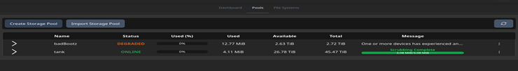 - This will begin the resilvering process with the replacement drive, which you can then monitor from the Dashboard tab. We can see the resilver completed here, as there is little data on the pool. For a pool with more data, this time will be longer as it must reintegrate the drive into the ZFS pool.